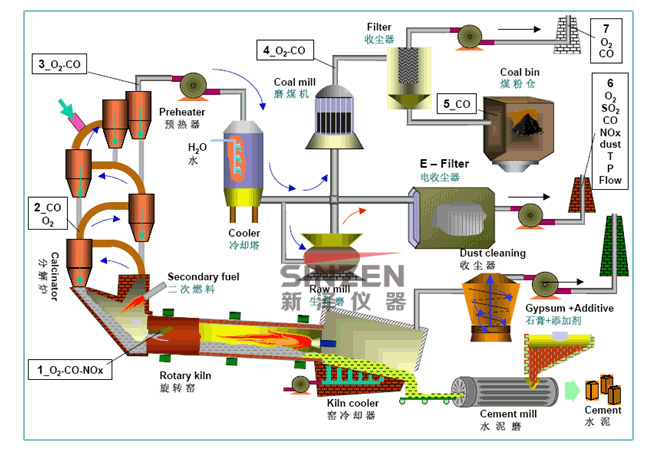 水泥工業(yè)在燃料分解、燃燒等生產(chǎn)過(guò)程中會(huì)產(chǎn)生粉塵、SO2、NOX、CO、CO2等氣體對(duì)大氣環(huán)境產(chǎn)生嚴(yán)重影響。次檢查這些氣體的含量,對(duì)于節(jié)能減排、提高生產(chǎn)效率、降低能耗和保障生命及生產(chǎn)的安全至關(guān)重要。旋窯、回轉(zhuǎn)窯是能耗大戶,為了節(jié)能降耗,實(shí)現(xiàn)燃燒爐中煤氣的充分燃燒,就需要在線檢測(cè)回轉(zhuǎn)窯煙氣的組份含量,在保證燃燒溫度的基礎(chǔ)上調(diào)節(jié)好煤氣和空氣的配比,達(dá)到節(jié)能降耗的目的。 新澤科技?xì)怏w分析技術(shù)能夠準(zhǔn)確可靠地測(cè)量各類工業(yè)氣體含量,為水泥建材提供完整的氣體分析解決方案。