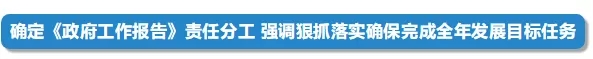 會(huì)議將《政府工作報(bào)告》提出的重點(diǎn)任務(wù)逐項(xiàng)分解,明確責(zé)任單位和時(shí)限,要求國(guó)務(wù)院各部門以對(duì)人民高度負(fù)責(zé)的精神,不折不扣抓好落實(shí),奮力完成全年經(jīng)濟(jì)社會(huì)發(fā)展主要目標(biāo)任務(wù)。
