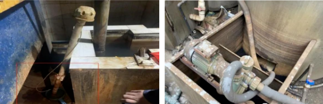 現場檢查發現,該處理廠廢水排放口pH自動分析儀被人為拔出放在邊上裝滿清水的塑料瓢內,廢水處理設施末端沉淀池內有一根自來水管對廢水進行稀釋,加藥桶未在加藥。經環境監測人員現場監測,沉淀池、排放口處pH值均超標,而塑料瓢內清水的pH值為達標,該行為涉嫌自動監控數據弄虛作假。同時發現,廢氣處理設施第一級噴淋塔配套的水箱已干,未在噴淋,第二級噴淋塔正常運行,該行為涉嫌不正常運行大氣污染防治設施。