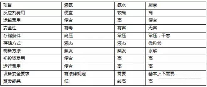 脫硝還原劑比較