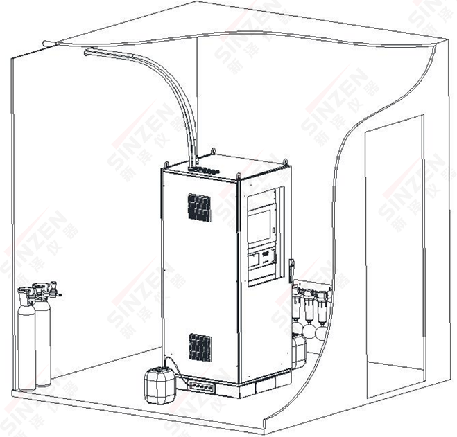 CEMS機柜的安放位置的四周應留有足夠的空間,以便柜內設備的安裝與維護。機柜周圍不能有高壓變、配電柜及變頻柜等有強電磁干擾的設備。機柜在儀表間的安裝示意圖。